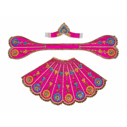 Mata Rani Designer Poshak – Premium Magenta Devotional Poshak with Crown for Maa Durga Idol